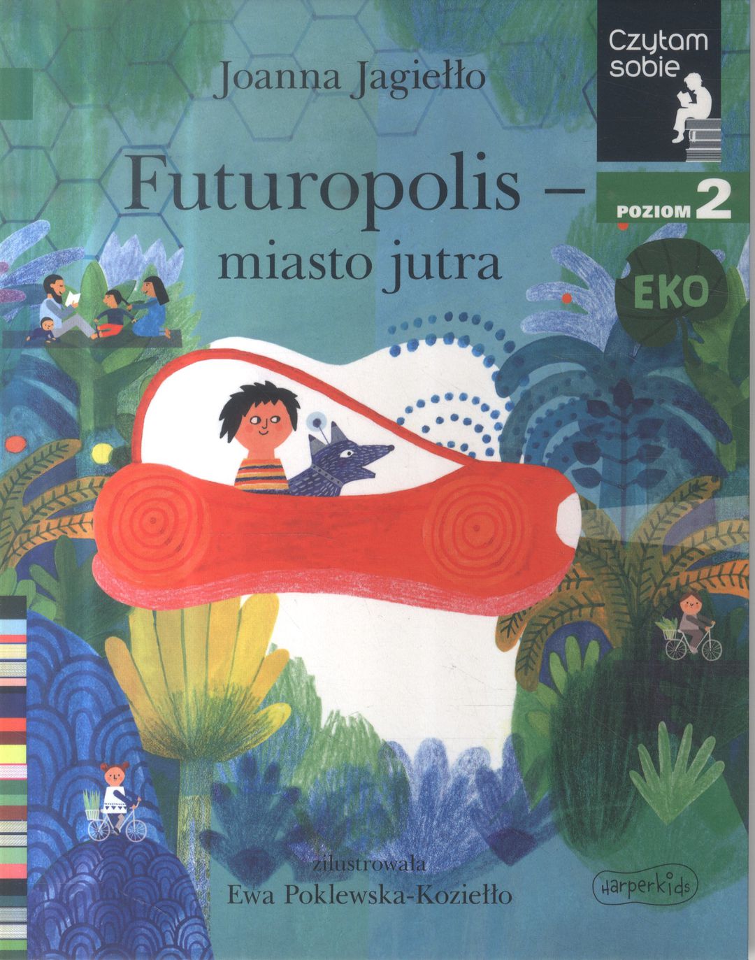 Futuropolis to miasto przyszłości. Są w nim domy po same chmury, ukwiecone balkony, a energia pochodzi z ekologicznych źródeł. Dookoła miasta biegną autostrady tramwajowe. Kiedy Antek trafia do tego niezwykłego miejsca, nie może się nadziwić tym wszystkim cudom. Składam zdania, drugi poziom Czytam sobie to propozycja dla dzieci, które rozpoczęły już swoja przygodę z czytaniem. Zdania są tu dłuższe, a w tekście jest więcej dialogów. Duża czcionka ułatwia czytanie, a wyrazy w ramkach pomagają w ćwiczeniu sylabizowania. Ciekawe, zabawne historie pióra wybitnych polskich autorów i ilustracje autorstwa najlepszych polskich ilustratorów sprawią, że czas spędzony na czytaniu, będzie czasem świetnej zabawy. Zgodne z zaleceniami metodyków."